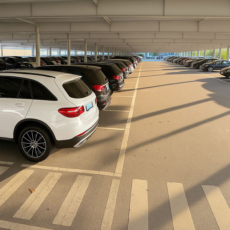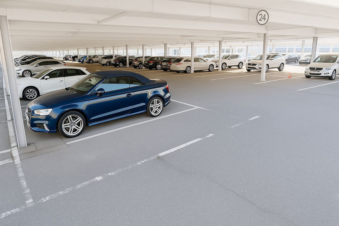 ParkingFirst: Shuttle-Parken am Flughafen, nur 6 km vom Terminal entfernt.